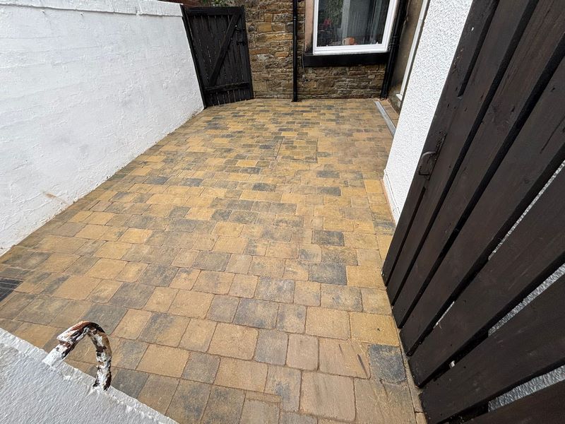 Rustic Burnt Willow Block Paved Patio – Waterfoot, Rossendale