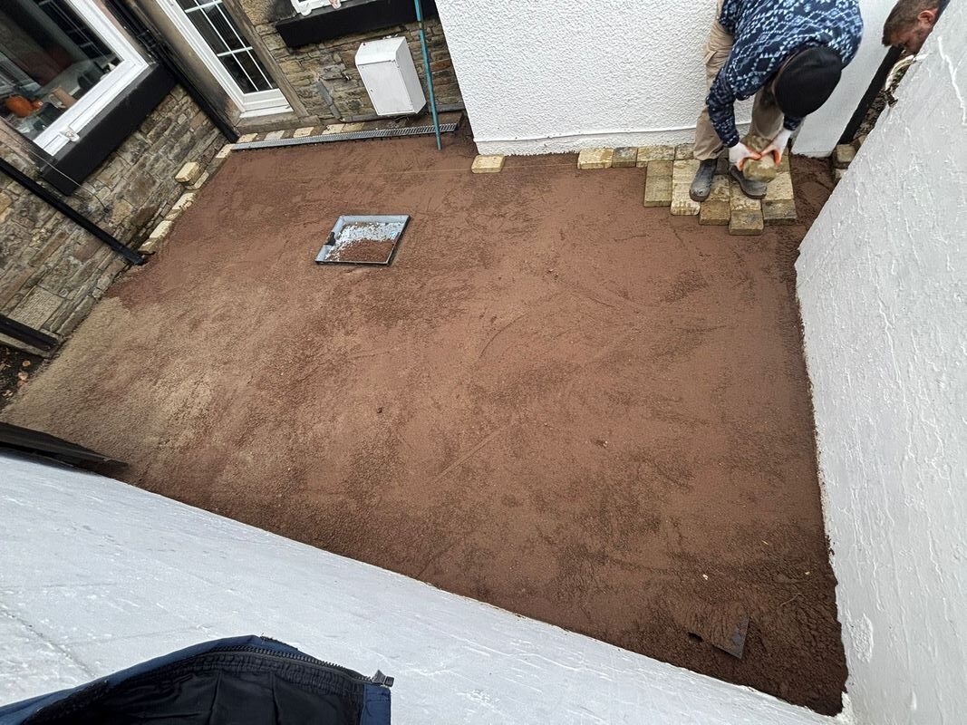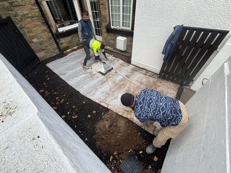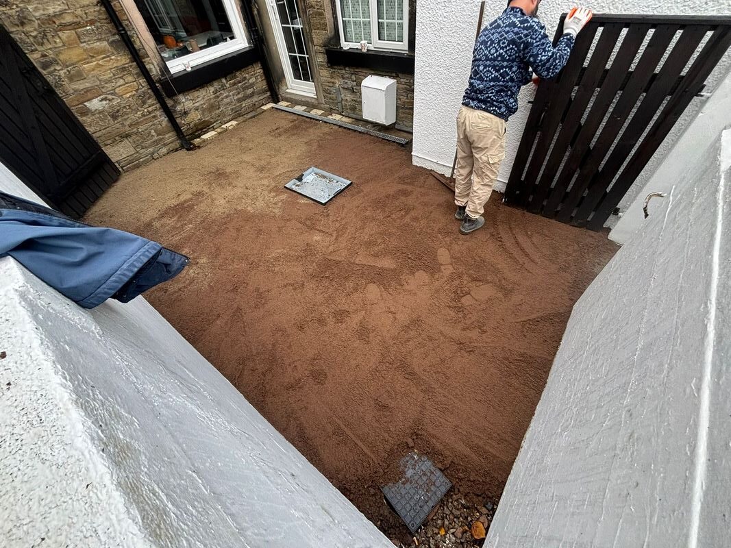 - A weed control membrane was laid to prevent future growth, followed by a sharp sand layer which was levelled and compacted for perfect alignment.