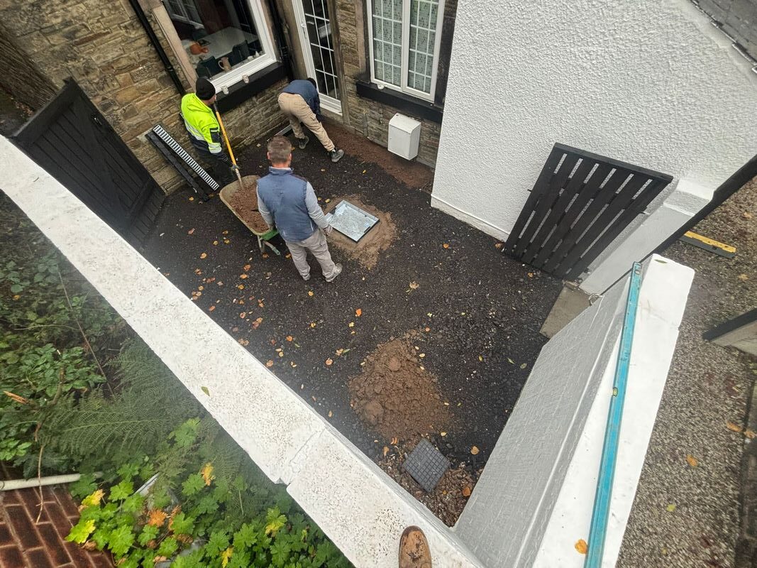 - The existing surface was cleared, removing the old paving and gravel to make way for a fresh foundation.