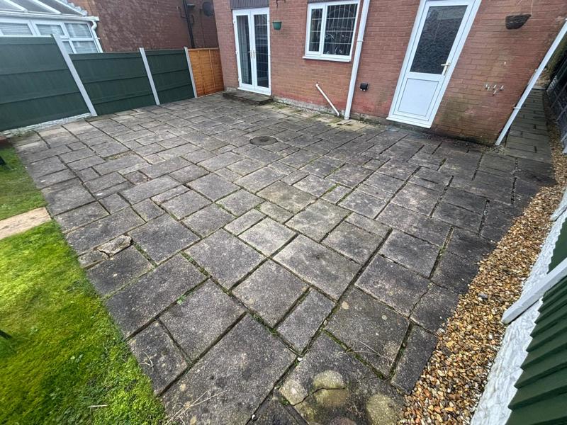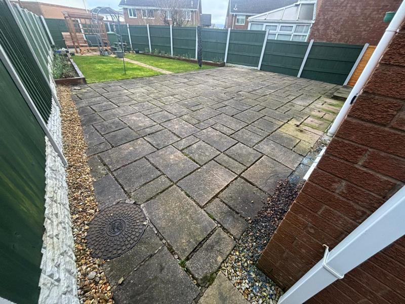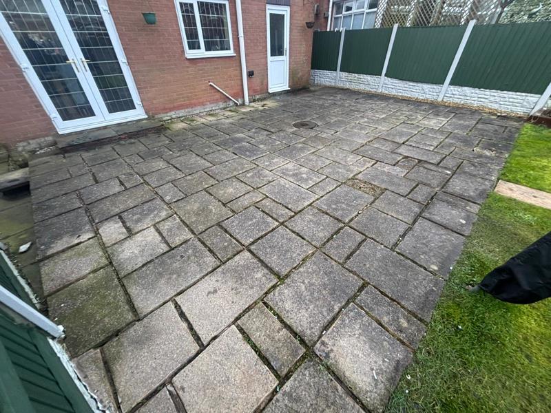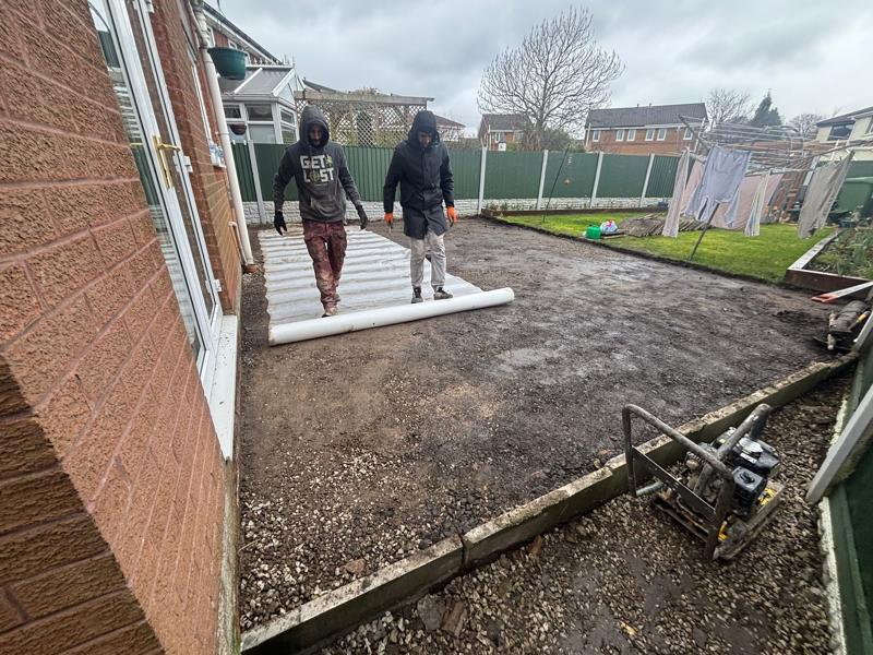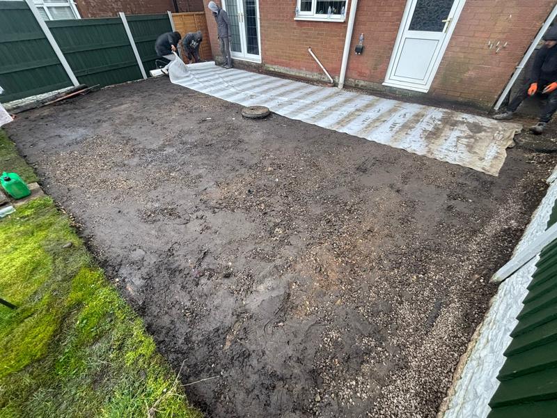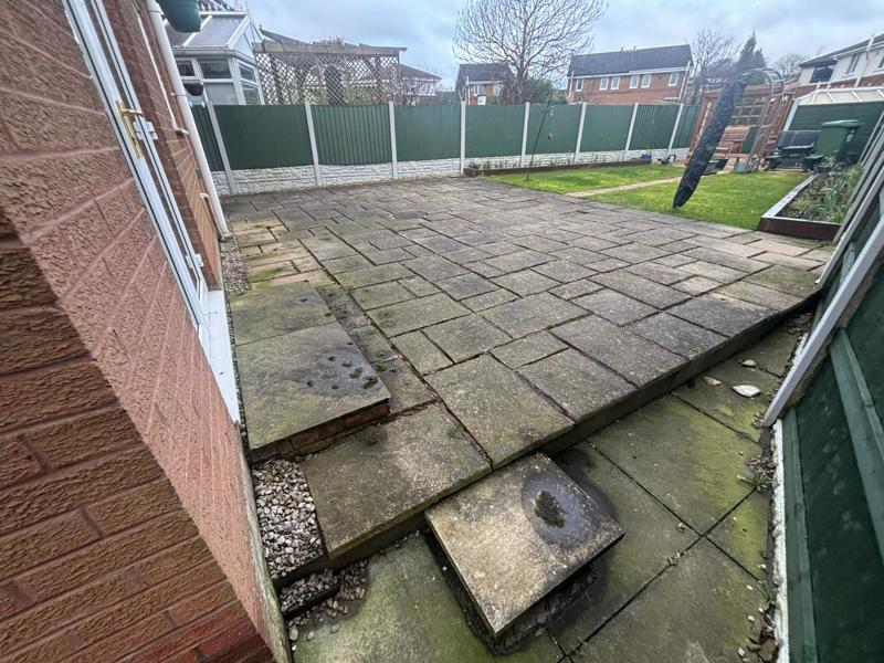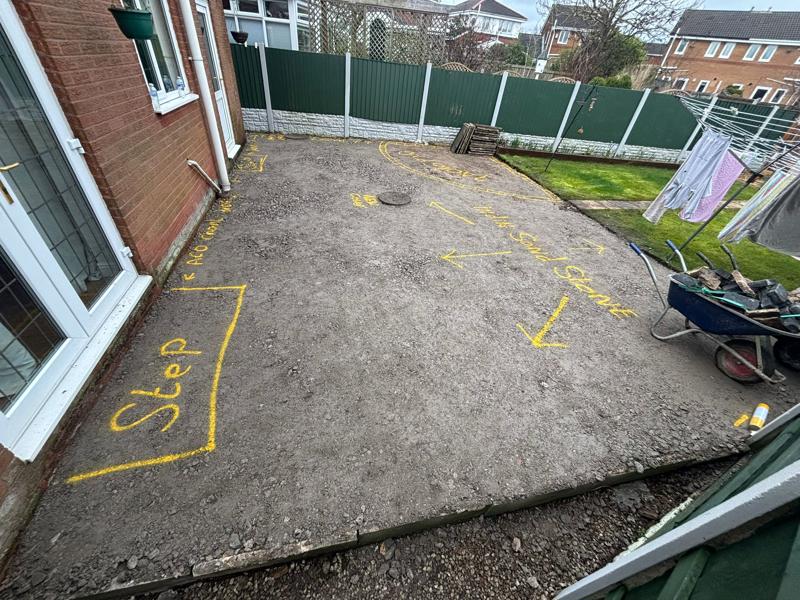 The existing patio had seen better days, with worn slabs, poor levels, and limited definition around the garden. Our team stripped back the area and carried out full ground preparation to ensure a long-lasting, stable base before installing the new surface.
