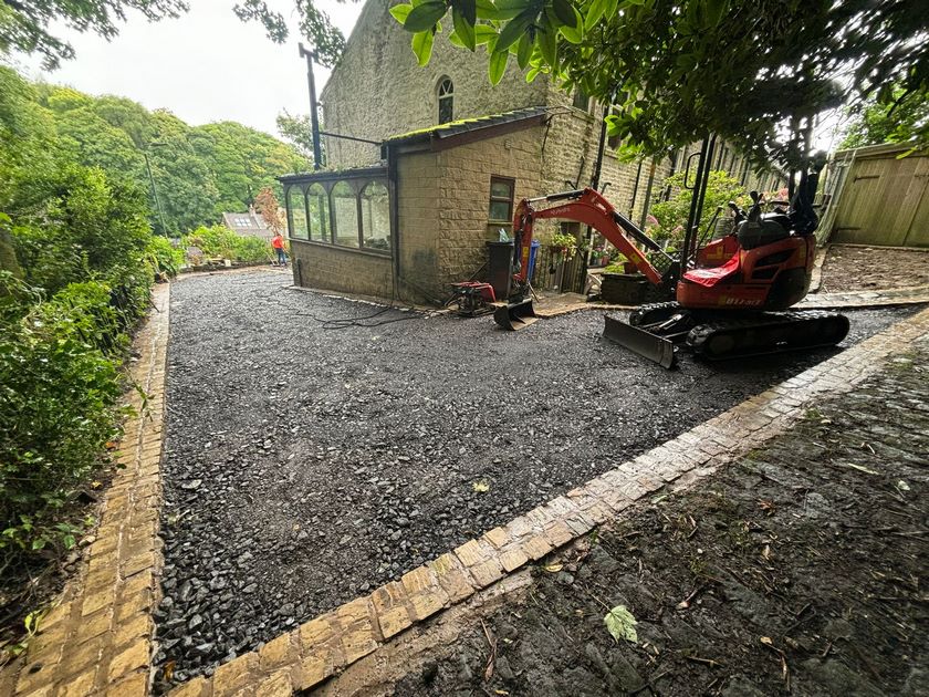 Our first step was to fully excavate the area, removing all the old materials and debris. This was followed by meticulous groundwork to level the surface and ensure it was ready for the new driveway. Throughout this process, we worked carefully to preserve the natural surroundings of the cottage, as maintaining the rural charm of the property was a top priority.