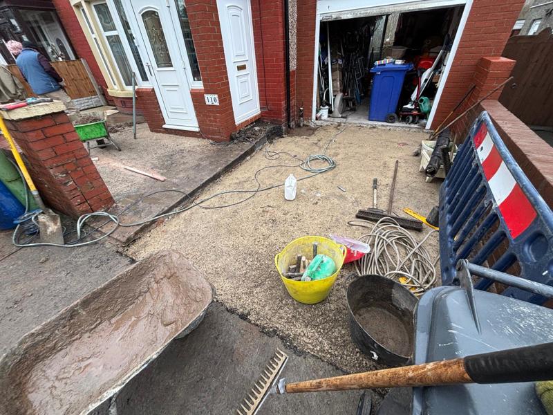Before installation began, our team carried out a full site assessment to understand ground conditions, drainage requirements, and the desired patio layout. The existing driveway was carefully cleared, and the area excavated to the correct depth to allow for a strong foundation.